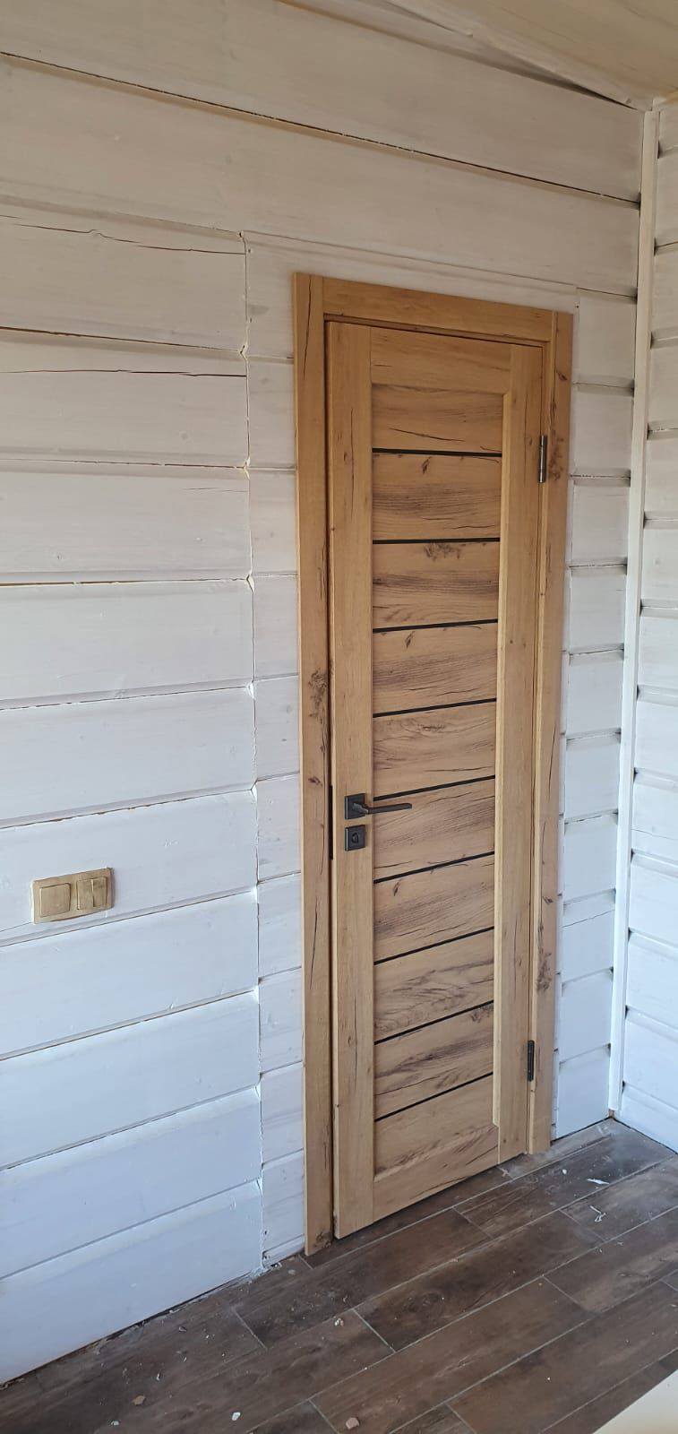 - Обшивка из экошпона. Это прочный материал, имитирующий фактуру и оттенки натурального массива. Модели Евро 19 представлены в цветах Дуб крафт натуральный, серый и белый, а также Граф белый и Черный жемчуг.
