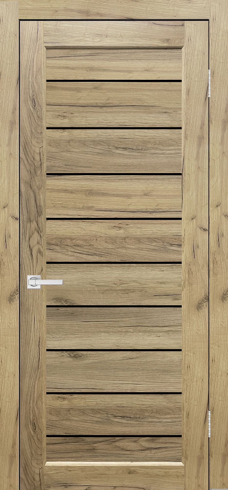 Модель Евро 26 проста в исполнении и элегантна по форме, что делает ее интересным и современным решением в дизайне любого интерьера. В конструкции двери в качестве рамы используется комбинированный материал с использованием соснового бруса. Каждый угол такой рамы усиливается за счет пары шкантов, которые вместе со стяжным винтом значительно увеличивают прочность конструкции. Филенки из МДФ отлично сочетаются с надежно закрепленными стеклянными вставками из черного стекла «Лакобель». Использование таких материалов в изготовлении полотна делает Евро 26 надежной моделью, с высокими показателями износостойкости и запоминающейся эстетикой элементарных форм.