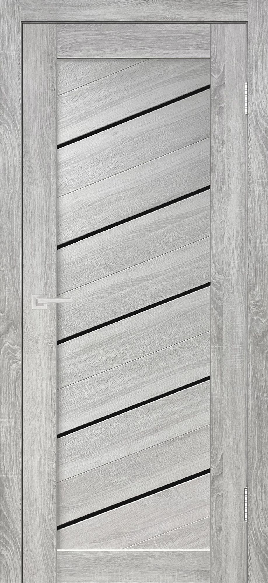 Притягательная эстетика наклонных линий в модели Форум Диагональ никого не оставит равнодушным. Стеклянные наклонные вставки из черного стекла «Лакобель» подчеркивают независимый стиль данного полотна. Дверь выполнена из соснового бруса с накладками из немецкого МДФ. Такая конструкция очень надежна и долговечна.