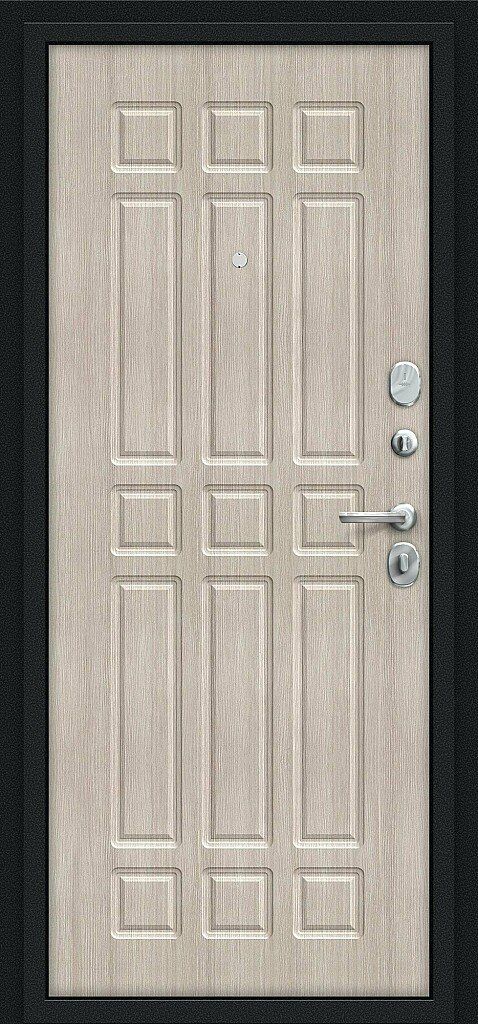 Высота/ширина, см205/86, 96ЗамкидваИсполнениеchrome editionКачествоСертифицирован для РФ по ГОСТ 31173-2016. Наивысшие классы по эксплуатационным характеристикам (1) и прочности (М5). Сертификат POCC RU.SSK1.H00960/21.КреплениеДвери крепятся анкерными болтами через коробку (8 отверстий) или с использованием монтажных пластин (6 шт. в комплекте).Марка сталиВысококачественная конструкционная углеродистая сталь (08пс).МаркаBRAVOМасса брутто, кг47ОкраскаИндустриальная полиэфирная порошковая краска голландского концерна AkzoNobel.ОписаниеСтальной дверной блок с открыванием наружу. Поставляется с правым и левым открыванием.ОсобенностиСтабильно точные геометрические показатели, которые обеспечиваются высокой степенью автоматизации и роботизации производства.Отделка внутриДекоративная панель. Толщина 8 мм, Эко Шпон.Отделка снаружиСтальной лист с декоративным тиснением.Размер проема в свету, см196/77, 87РегулировкаБлок укомплектован эксцентриком, правильная регулировка которого обеспечивает легкость открывания и беспрепятственную работу замковых механизмов.СтильклассикаСтрана производстваРоссияТип коробкиОткрытыйТипметалл/панельТолщина полотна/коробки, мм66/92Толщина стали полотна/коробки, мм1,2 (у других производителей, как правило, не более 0,8 мм).УпаковкаТрехслойный гофрированный картон марки Т-23, полипропиленовые ленты (стреппинг).УплотнениеТри контура высококачественного EPDM-уплотнителя (Швеция).УсилениеСемь усиливающих уголков и защитный карман для замков. Дополнительную стойкость ко взлому обеспечивают два противосъемных штыря.Утепление полотнаВнутри полотна установлена панель EPS (Expanded PolyStyrene), которая обеспечивает необходимую тепло- и шумоизоляцию.Цвет внутрисветлыйЦвет снаружичерныйШирина наличника50 (у других производителей, как правило, не более 36 мм). -