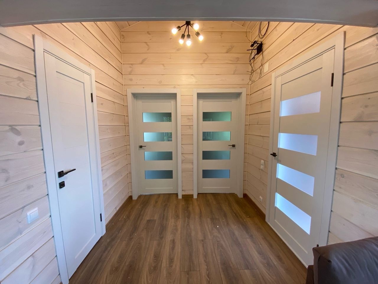 Рамочные (царговые) двери изготовлены из ЛВЛ (англ. Laminated Veneer Lumber, LVL) или высококачественного соснового бруса и плитных материалов, без пустот. Бескромочная технология производства. Крепеж из закаленной стали надежно фиксирует детали двери в 8 точках (у других производителей, как правило, не более 4).