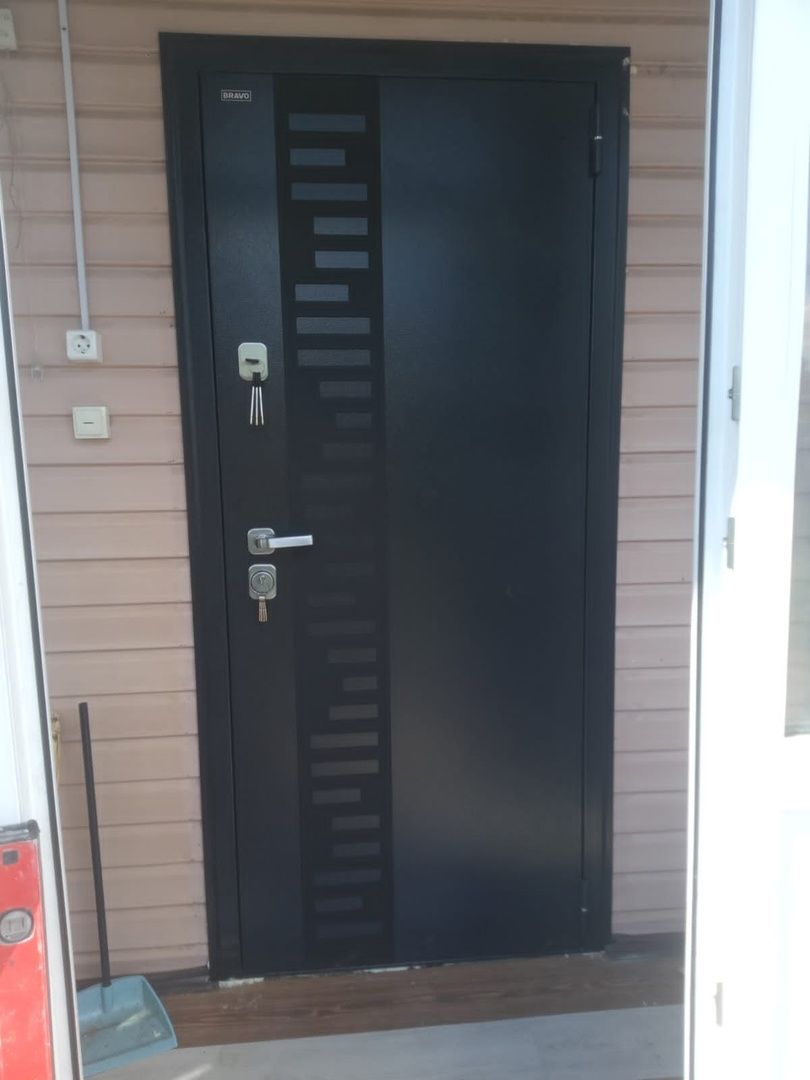 Вместимость в фуру, шт.≈ 190ВниманиеПеред дверью должен быть предусмотрен тамбур или козырек шириной от 1800 мм и вылетом от стены не менее 1500 мм. Монтаж блока осуществляется с использованием в местах примыкания наличника к стене паропроницаемой саморасширяющейся уплотнительной ленты (ПСУЛ) шириной от 20 мм и плотностью не менее 30 кг/куб.м.Высота/ширина, см205/86, 96КачествоСертифицирован для РФ по ГОСТ 31173-2016. Наивысшие классы по эксплуатационным характеристикам (1) и прочности (М5). Сертификат POCC RU.SSK1.H00960/21.Кол-во в упаковке/паллетевертикальная загрузка.КреплениеБлок крепится анкерными болтами через коробку (8 отверстий) или с использованием монтажных пластин (6 шт. в комплекте).Марка сталиВысококачественная конструкционная углеродистая сталь (08пс).МаркаBRAVOМасса брутто, кг93,5/100Масса нетто, кг92/98Объем, куб.м0,33/0,37ОкраскаИндустриальная полиэфирная порошковая краска голландского концерна AkzoNobel.ОписаниеСтальной дверной блок энергосберегающей конструкции с двойным терморазрывом (термомостом) из натуральной пробки, четырехконтурным уплотнением и уникальным цилиндром с термоштоком. Поставляется с правым и левым открыванием наружу.ОсобенностиСтабильно точные геометрические показатели, которые обеспечиваются высокой степенью автоматизации и роботизации производства.Отделка внутриДекоративная панель с возможностью замены. Толщина 22 мм, Эко Шпон, зеркало Reflex.Отделка снаружиСтальной лист с «металлодекором».Размер проема в свету, см194/75, 85РегулировкаБлок укомплектован эксцентриком, правильная регулировка которого обеспечивает легкость открывания и беспрепятственную работу замковых механизмов.СтильмодернСтрана производстваРоссияТип коробкиОткрытыйТипметалл/панельТолщина полотна/коробки, мм105/136Толщина стали полотна/коробки, мм1,4 (у других производителей, как правило, не более 0,8 мм).УпаковкаПятислойный гофрированный картон марки П-32, полипропиленовые ленты (стреппинг).УплотнениеЧетыре контура высококачественного EPDM-уплотнителя (Швеция).УсилениеСемь усиливающих уголков и защитный карман для замков. Дополнительную стойкость ко взлому обеспечивают два противосъемных штыря.Утепление коробкиТерморазрыв (термомост) из натуральной пробки между внутренним и наружным профилями коробки. Внутри коробки установлен эффективный тепло- и шумоизоляционный материал из вспененного полиэтилена ламинированного металлизированной пленкой с алюминиевым напылением (фольгой) - Broflex.Утепление полотнаТерморазрыв (термомост) из натуральной пробки по периметру полотна. Внутри полотна установлена конструкционная теплоизоляционная панель SIP (Structural Insulated Panel), которая не только обеспечивает необходимую тепло- и шумоизоляцию, но и придает дополнительную жесткость и прочность дверному блоку.Цвет внутритемныйЦвет снаружичерныйШирина наличника64 -