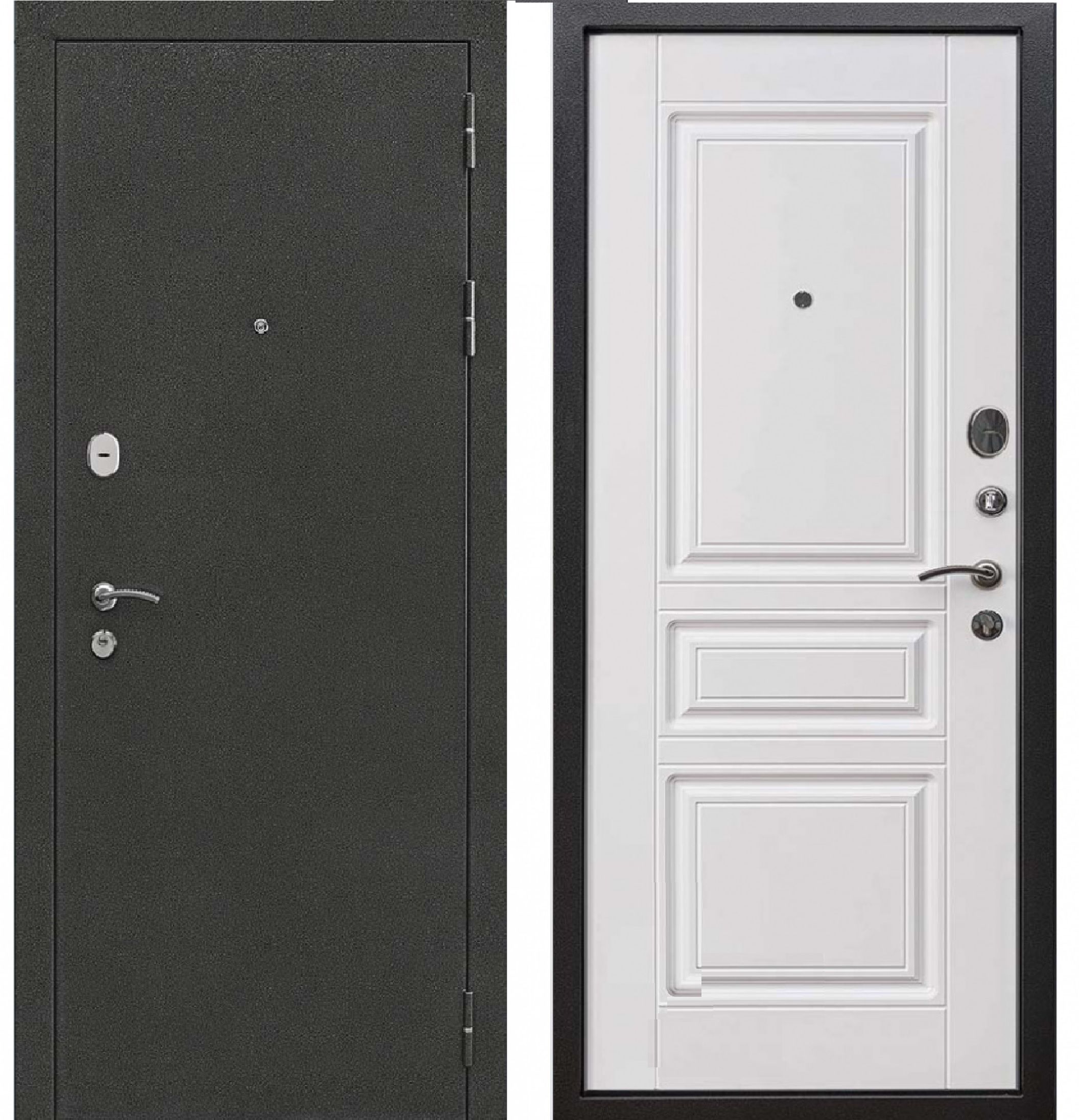Отделка: полимерное покрытие Черное серебро / 16 мм МДФ панель, Белый матовый
