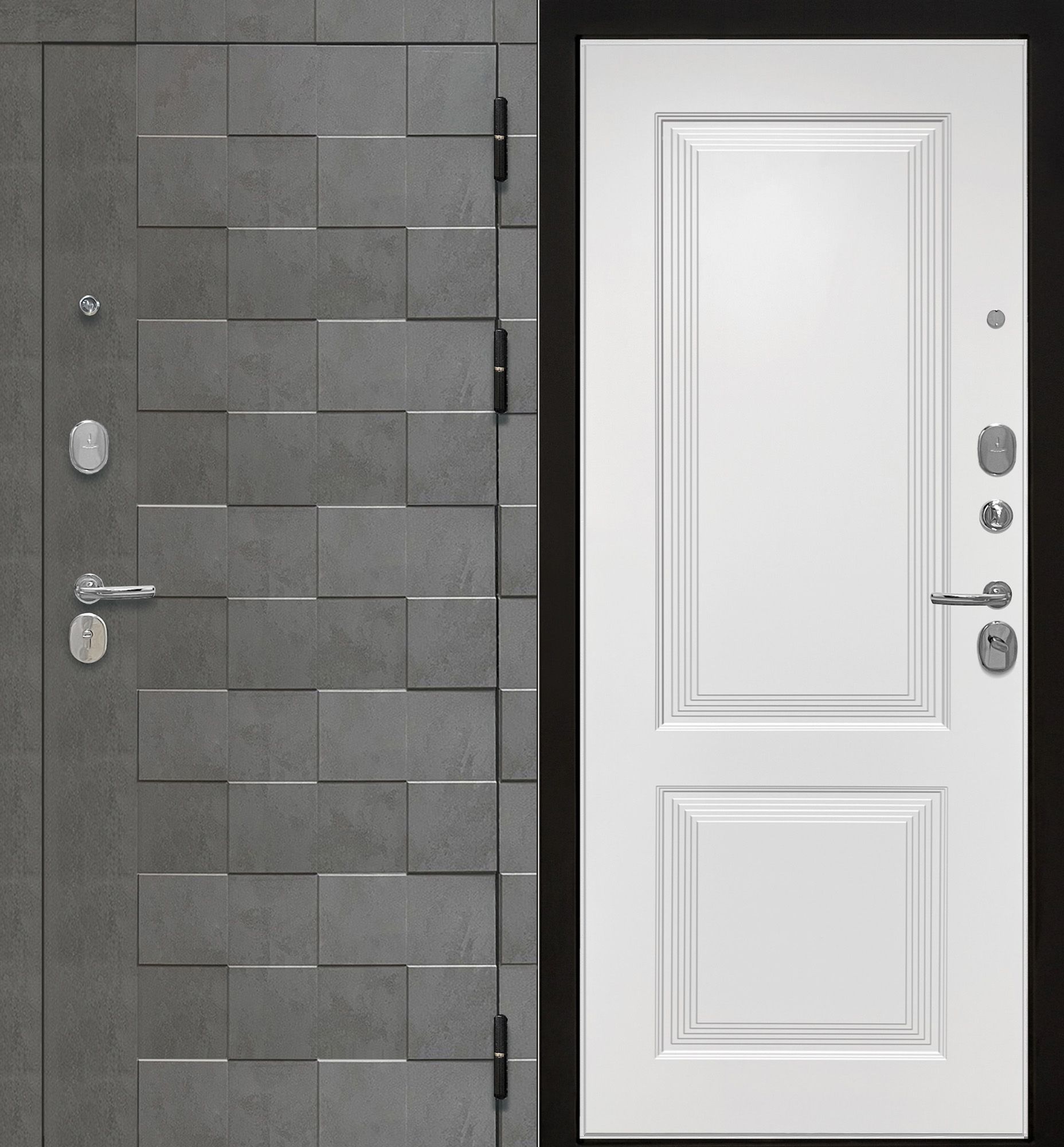 Фрезерованная МДФ панель 10мм "Бетон темный", комбинация объемного шахматного рисунка и гладкой поверхности.