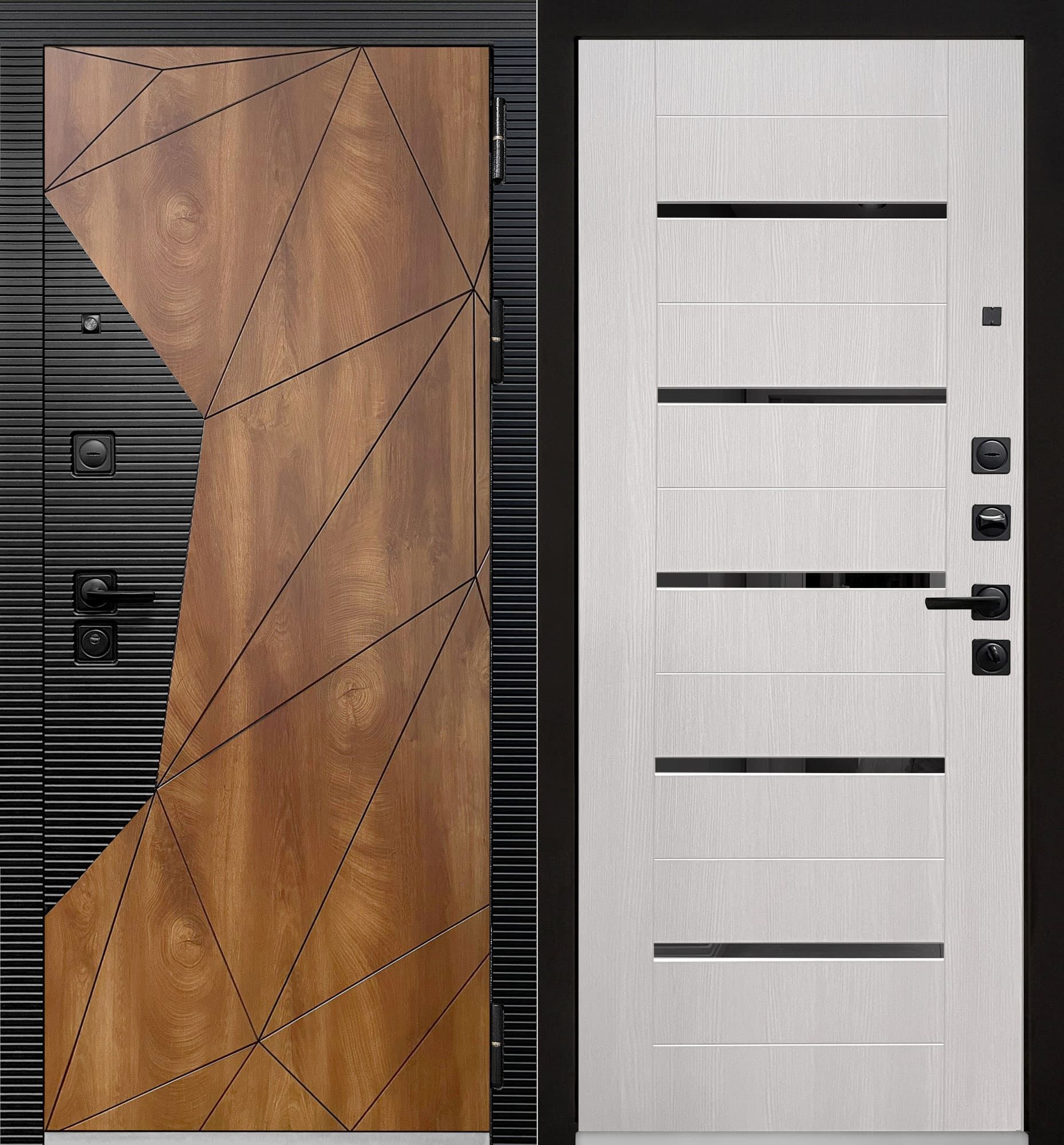 Объёмная комбинированная МДФ панель 10 мм, экошпон Дуб коньяк с вековыми кольцами и патиной, горизонт фреза экошпон Кварц чёрный.