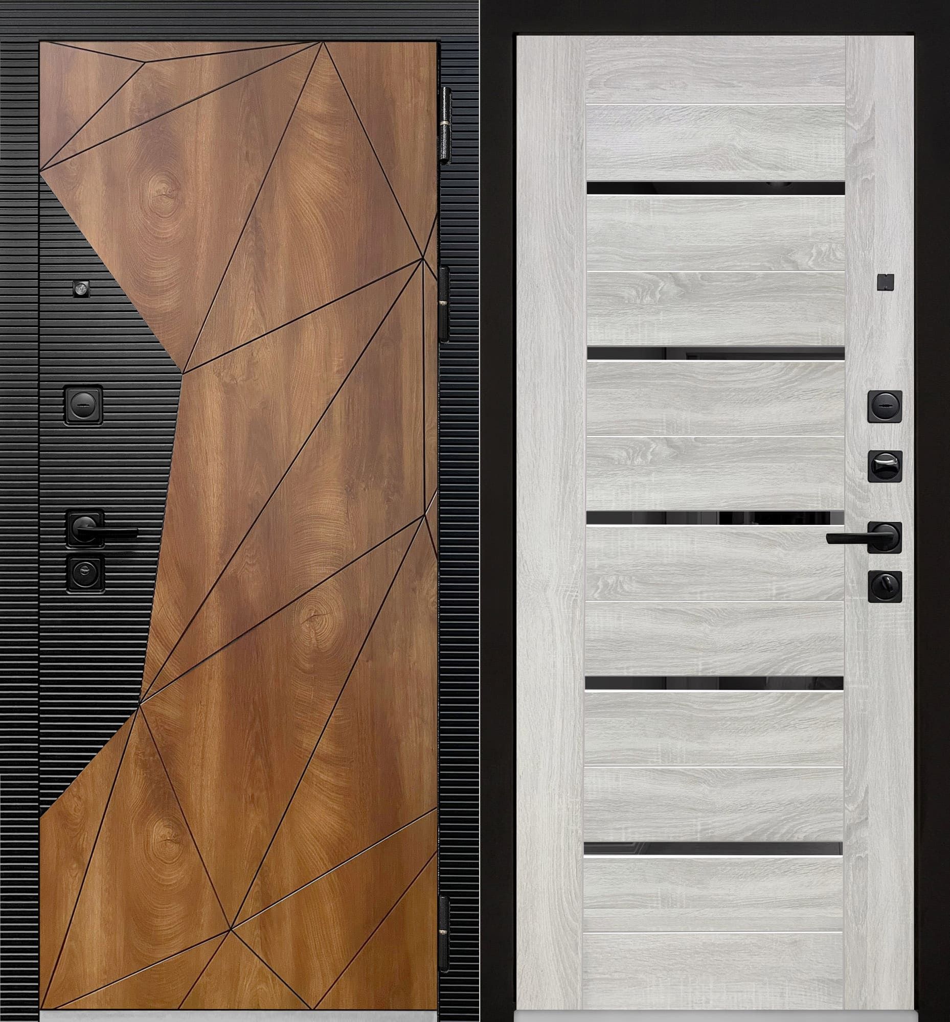 Объёмная комбинированная МДФ панель 10 мм, экошпон Дуб коньяк с вековыми кольцами и патиной, горизонт фреза экошпон Кварц чёрный.