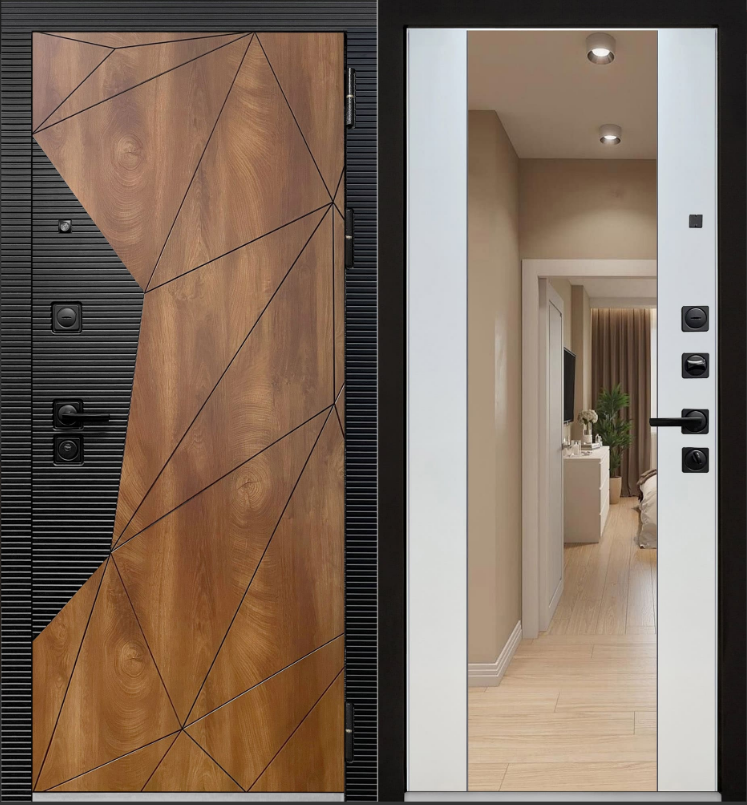 МДФ панель 12 мм, покрытие экошпон «эмалит Белый» с декоративным зеркальным элементом, который допускает возможность искажения в отражении.