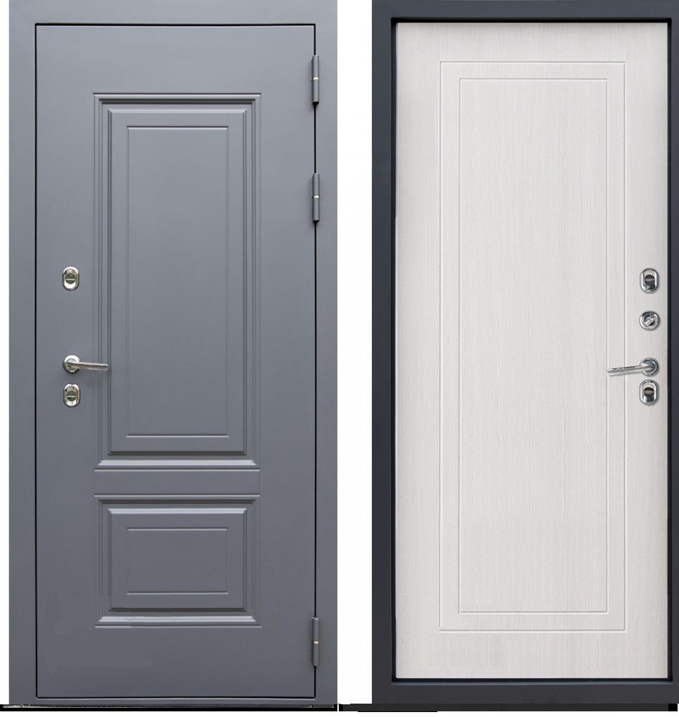 Отделка: «МУАР RAL 7024» + грунт-барьер «AKZO NOBEL», с глубокой давкой / 10 мм фрезерованная панель, Ясень белый