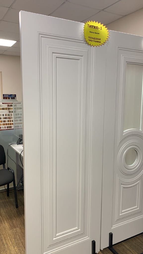Титул 1 — классическая межкомнатная дверь с широким многоуровневым и пропорционально выверенным рисунком. Каркас двери изготовлен из сращенного бруса сосны. Внутреннее пространство заполнено жестким ячеистым гофрокартоном, обеспечивающим дополнительную шумоизоляцию.