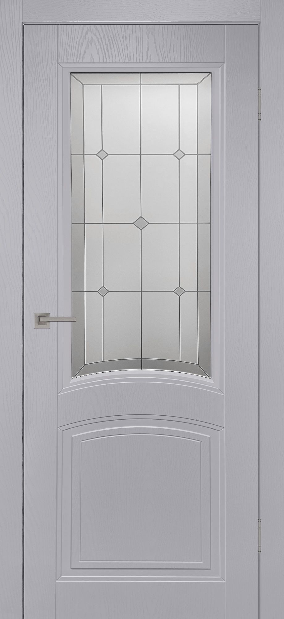 Модель оснащена стеклом «Сатинат» с фотопечатью. Достойная альтернатива шпонированным дверям по цене\качеству.